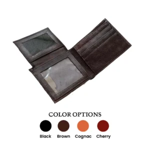 Billetera clásica para hombre, fabricada en cuero genuino. Dos espacios para billetes tarjetas y documentos de identificación. Diseño elegante y duradero.